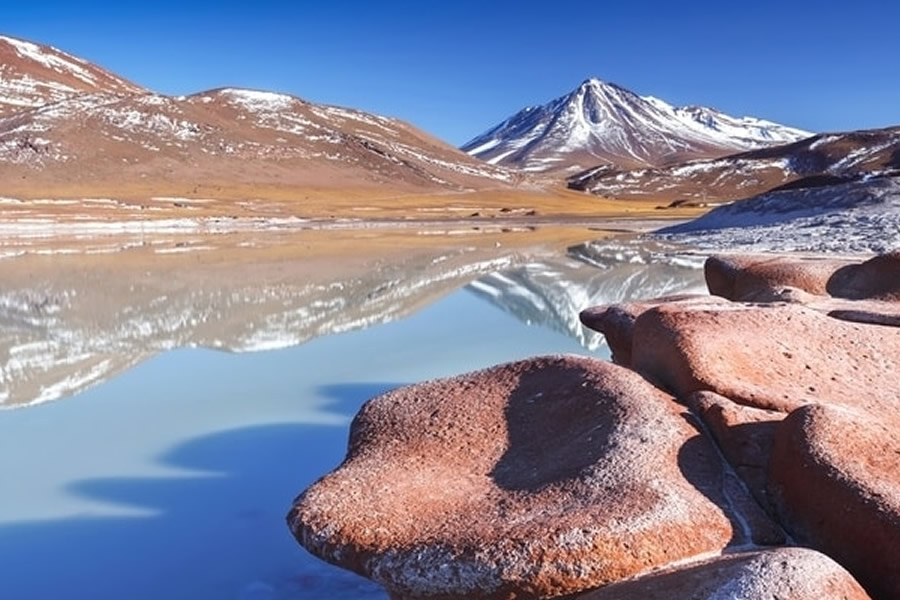 Pick up passengers between 07:00 AM to 07:30 AM from hotels located within the urban area of San Pedro de Atacama to go first to the central area of the Salar de Atacama to visit monument of Trópico de Capricornio, where breakfast is taken. Later we will move further south to visit the town of Socaire town located at 3,500 meters above sea level and located 85 km south of San Pedro de Atacama and known for terraced crops. We will continue along route CH23 to the south to enter the park of the Altiplanic Lagoons Miñique & Miscanti (4,200 m.a.s.l.). It is one of the 7 sectors that make up the Los Flamencos National Reserve, and undoubtedly possessing one of the most beautiful landscapes that theChilean highlands can have. The twin lagoons (Miñique & Miscanti) together with the beauty of its landscape are an important part of the ecosystem, since it is a nesting area for the horned tagua. Then we will start the way back and have lunch in Socaire. Arrival in San Pedro de Atacama around 16:00 hrs.