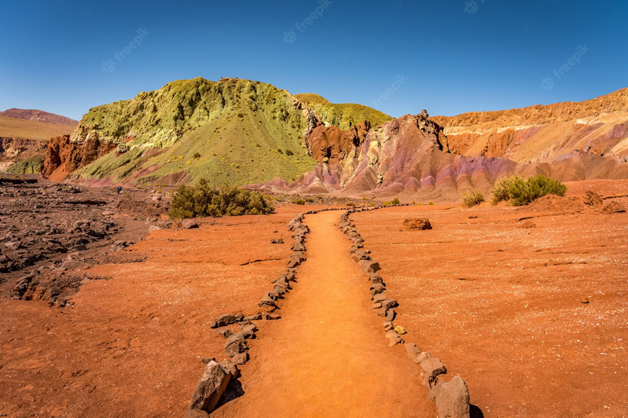 We will pick up passengers from hotels that are within the urban area of San Pedro de Atacama. The points to visit of this tour are located 65 km. from the town, first, we will take route 23 towards Calama. After about 30 minuteswe will turn off on a road towards the Rio Grande basin to visit the millenary petroglyphs of Yerbas Buenas place with great history of the time of the natives from Argentina and Bolivia. Laterwe will cross Matancilla to enter the Rainbow Valley, diverse conformation of rocky mountains with a variety of colors product of minerals, highlighting the red, green and yellow tones, adding the impressive caverns product of the millenary erosions. Breakfast in the area.